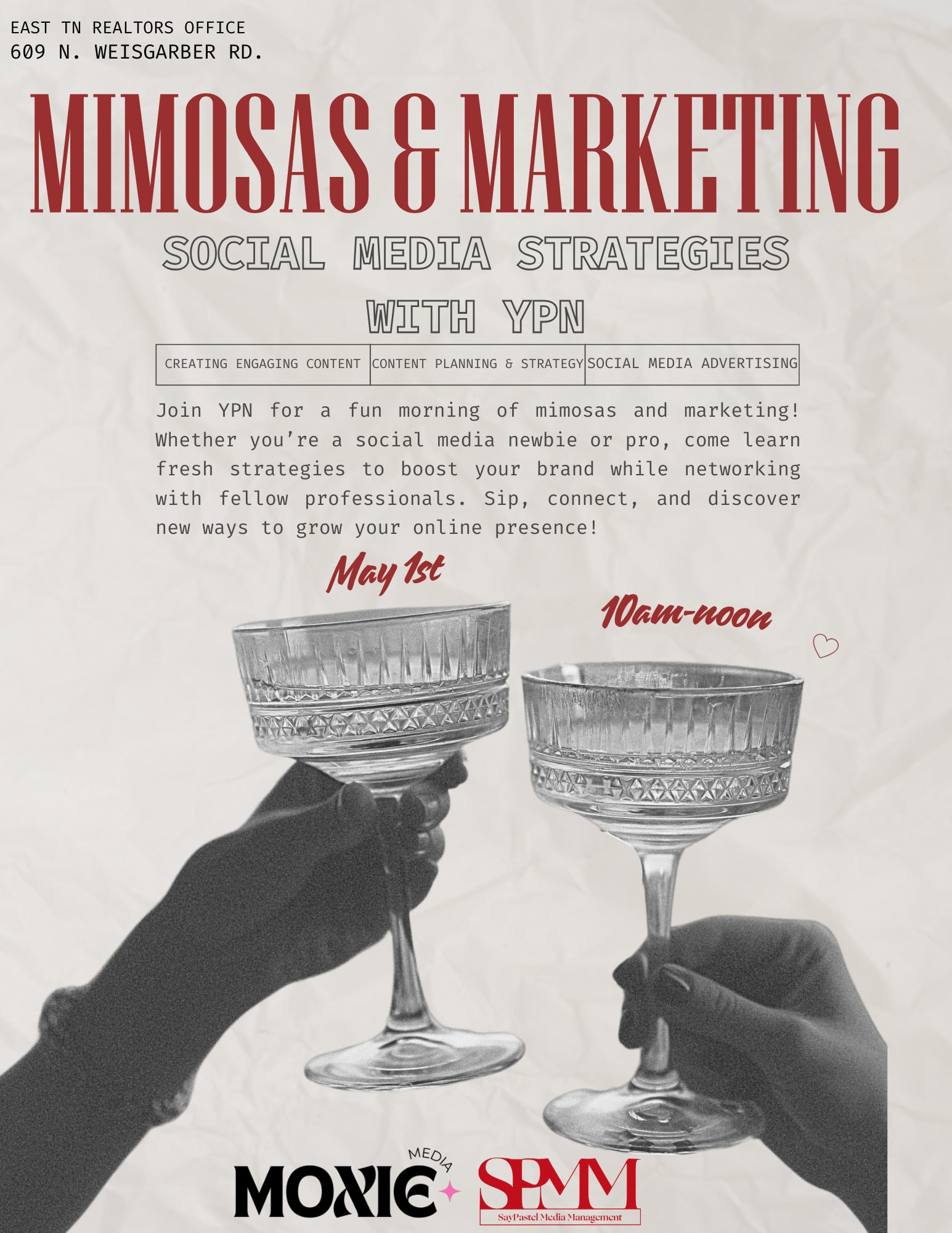 Join YPN for a fun morning of mimosas and marketing! Whether you’re a social media newbie or pro, come learn fresh strategies to boost your brand while networking with fellow professionals. Sip, connect, and discover new ways to grow your online presence!Images